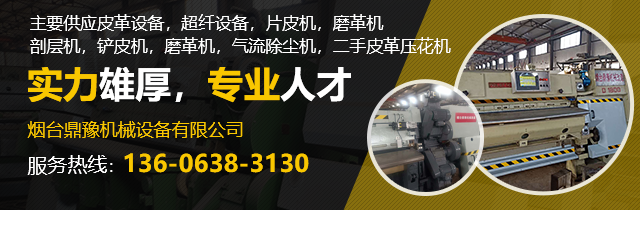 煙臺(tái)鼎豫機(jī)械設(shè)備有限公司位于山東省煙臺(tái)市芝罘區(qū)楚玉路238號(hào)泰和工業(yè)園,我公司主要經(jīng)營(yíng)皮革機(jī)械設(shè)備,超纖設(shè)備及配件的生產(chǎn),銷(xiāo)售。我們有好的產(chǎn)品和專(zhuān)業(yè)的銷(xiāo)售和技術(shù)團(tuán)隊(duì),主要供應(yīng)皮革設(shè)備,超纖設(shè)備,片皮機(jī),磨革機(jī),剖層機(jī),鏟皮機(jī),磨革機(jī),氣流除塵機(jī),二手皮革壓花機(jī)。我們具有專(zhuān)業(yè)維修國(guó)內(nèi)外各種型號(hào)精密片皮機(jī)的技術(shù)和能力,承攬大中小維修機(jī)械的業(yè)務(wù)。定制各種型號(hào)帶刀、砂輪等。